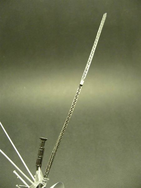 上圖這根長的跟竹竿一樣的金箍棒,是磁力針裝置,長達13m, 作用是來在測定星體的磁場,觀察它磁氣圈的構造以及太陽風的影響.