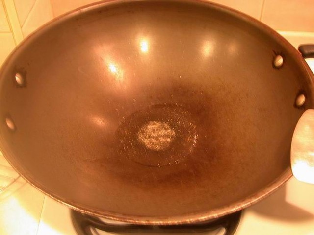 接下來正式開始,開火倒油(不用太多,如下圖)熱鍋: