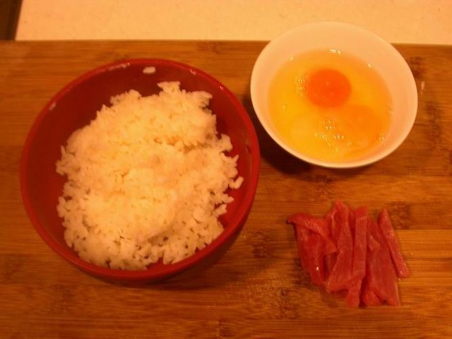 首先要做肉絲蛋炒飯,當然要有以下3種必要材料: