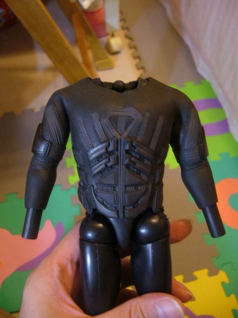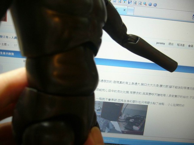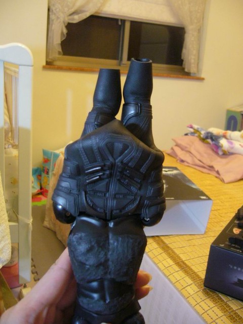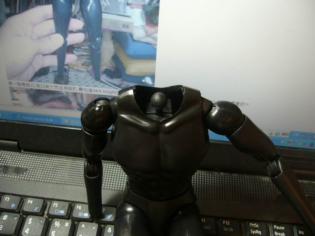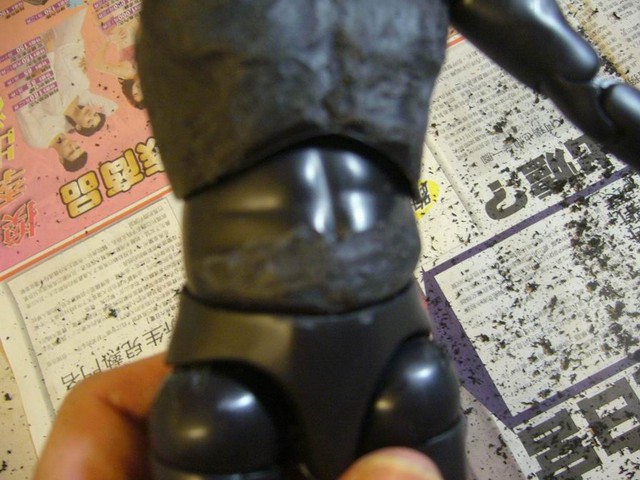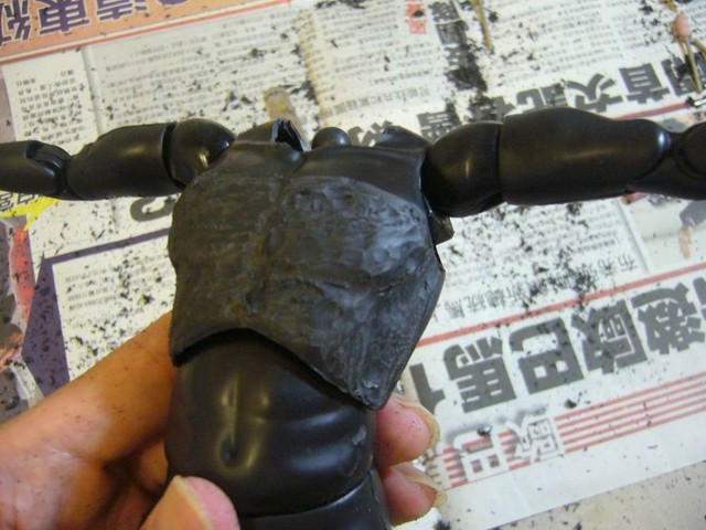 以下這張圖片是show出因為TDK頭雕向下望的角度受限而必須修改的部分:頸子口與兩根肋骨這邊要磨除掉更多,也就是頸子