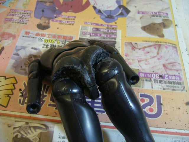 接下來是修改大腿只能向後彎曲衣點角度的部分,因為Hot Toys在素體的大腿與屁股相接部分內側用塑膠塊堵住了,才會造成