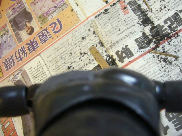 修改到這樣,也差不多過了快1.5小時,因為磨除了很多塑膠的部分,所以到處都是黑色的塑膠屑屑. 請在施工最做好戴上保護鏡施工,