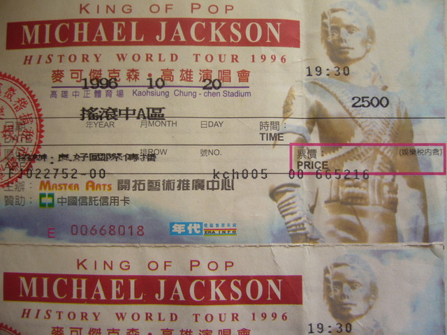 1996年: 已經升上大四的我,當時開拓藝術宣佈MJ將二度來台開演唱會. 而且這次除了在台北兩場之