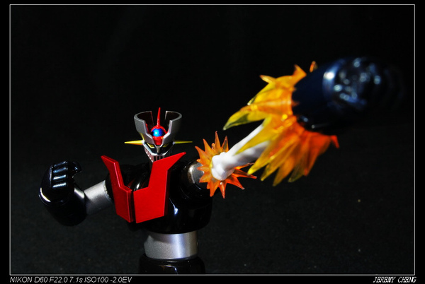 接下來要表現的就是要買了配件包才能展現出來的金剛飛拳喔...實在是太正點了!飛拳射出時的火焰 跟煙霧都呈現出來了...