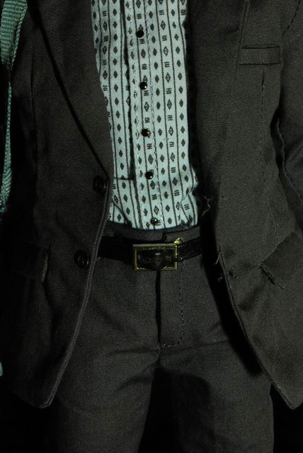 衣服部份就是灰色西裝外套配上淺灰撲克圖案藍色上衣,整體的縫工相當細膩,令人讚賞!
